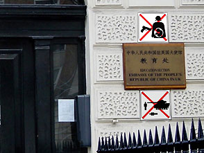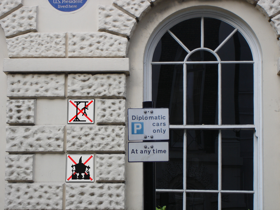 is a series of urban activist works using embassy gates as targets.