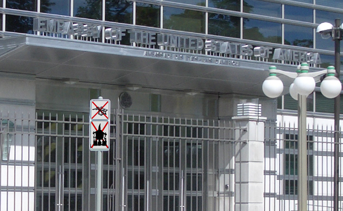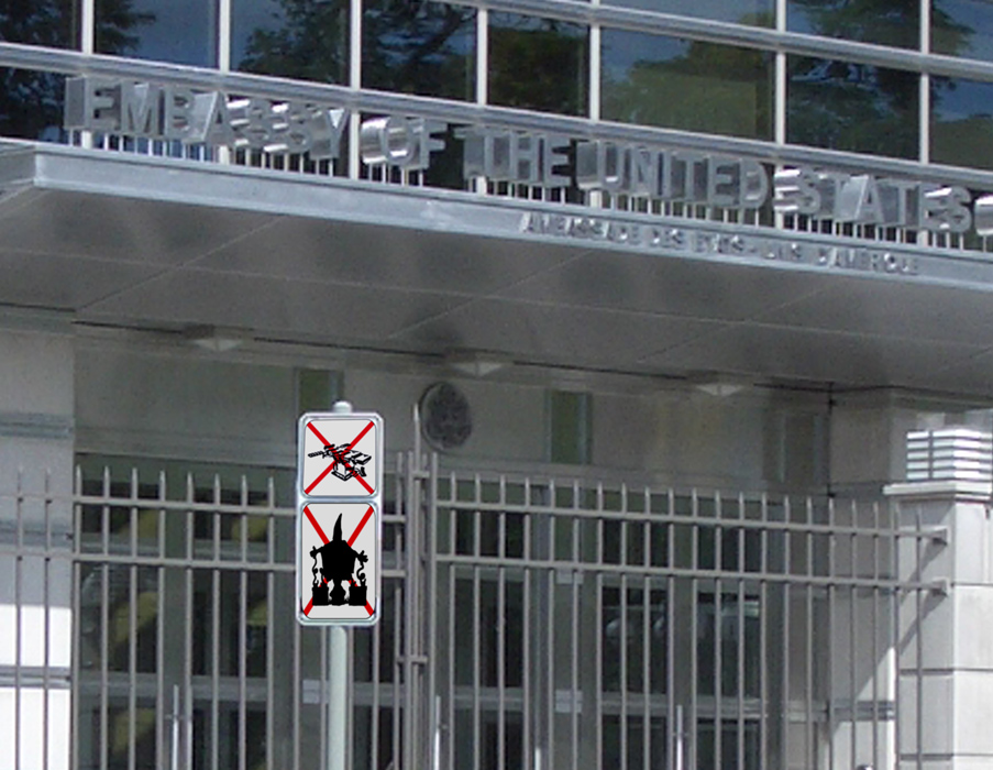 safety signs in embassy areas or closer to the entrances. They